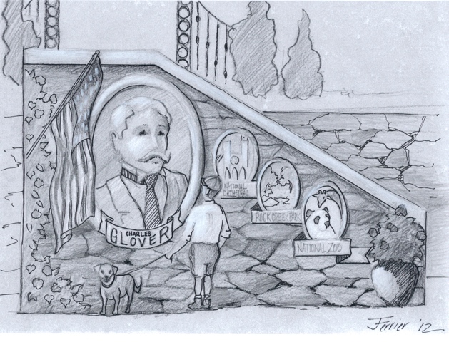 He describes the project as follows: “I would like to honor our neighborhood’s namesake, Charles Carroll Glover (pronounced Gluv-er) with a trompe l’oeil (fool the eye) style painting of a bas relief sculpture (think of Lincoln on the face of the penny). I envision additional vignettes displaying the different aspects of his positive influence to our city. Images could include, but are not limited to, The National Zoo, Rock Creek Park and the National Cathedral.