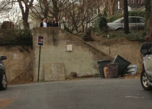 At the March ANC meeting, local artist Jarrett Ferrier, the man responsible for the “Welcome to Glover Park” signs at the north and south ends of Glover Park on Wisconsin Avenue, has proposed another mural project, this one for the concrete steps that connect W. Pl. and 37th St. He is seeking funding from the DC Commission on Arts and Humanities for the mural, and seeks community input on the project. In order to receive funding for the project, Mr. Ferrier must present his idea to the community and receive community input — so if you have any comments on this design, please let us know. Mr. Ferrier’s goal is to transform this:
